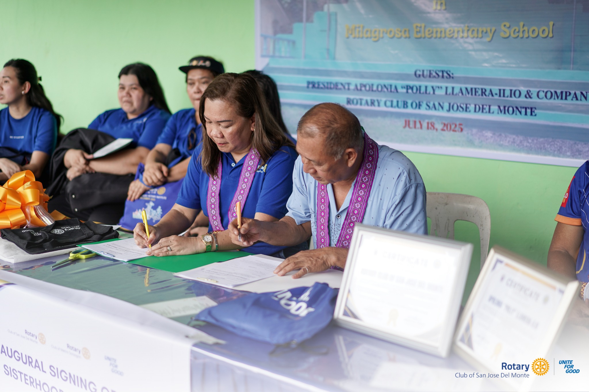 This meaningful project also served as the official kick-off of the sisterhood between the Rotary Club of San Jose Del Monte and the Rotary Club of Metro Sorsogon. The signing of the sisterhood agreement by both Presidents was witnessed by the students, parents, teachers, and the entire community of Milagrosa, Castilla, Sorsogon — a significant milestone for all involved.