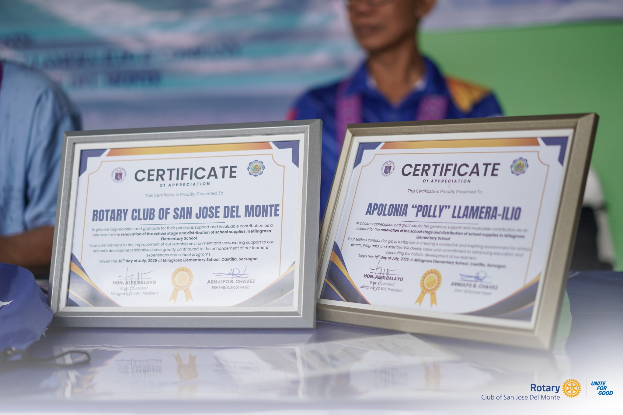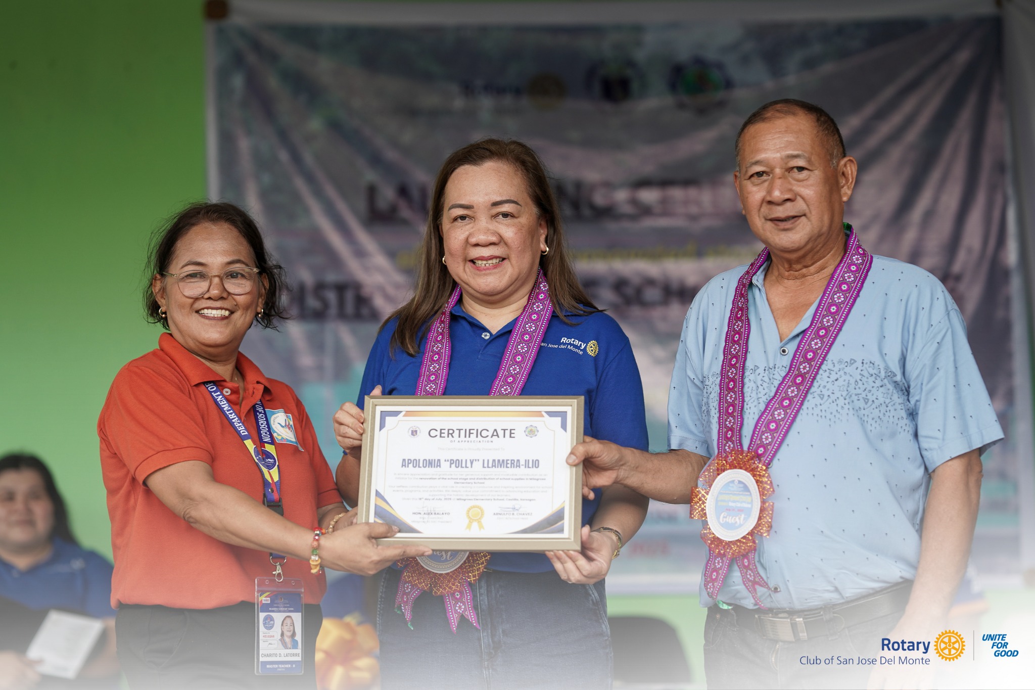 The Rotary Club of San Jose Del Monte humbly received certificates of appreciation awarded by Milagrosa Elementary School during the inauguration of its newly renovated school stage.