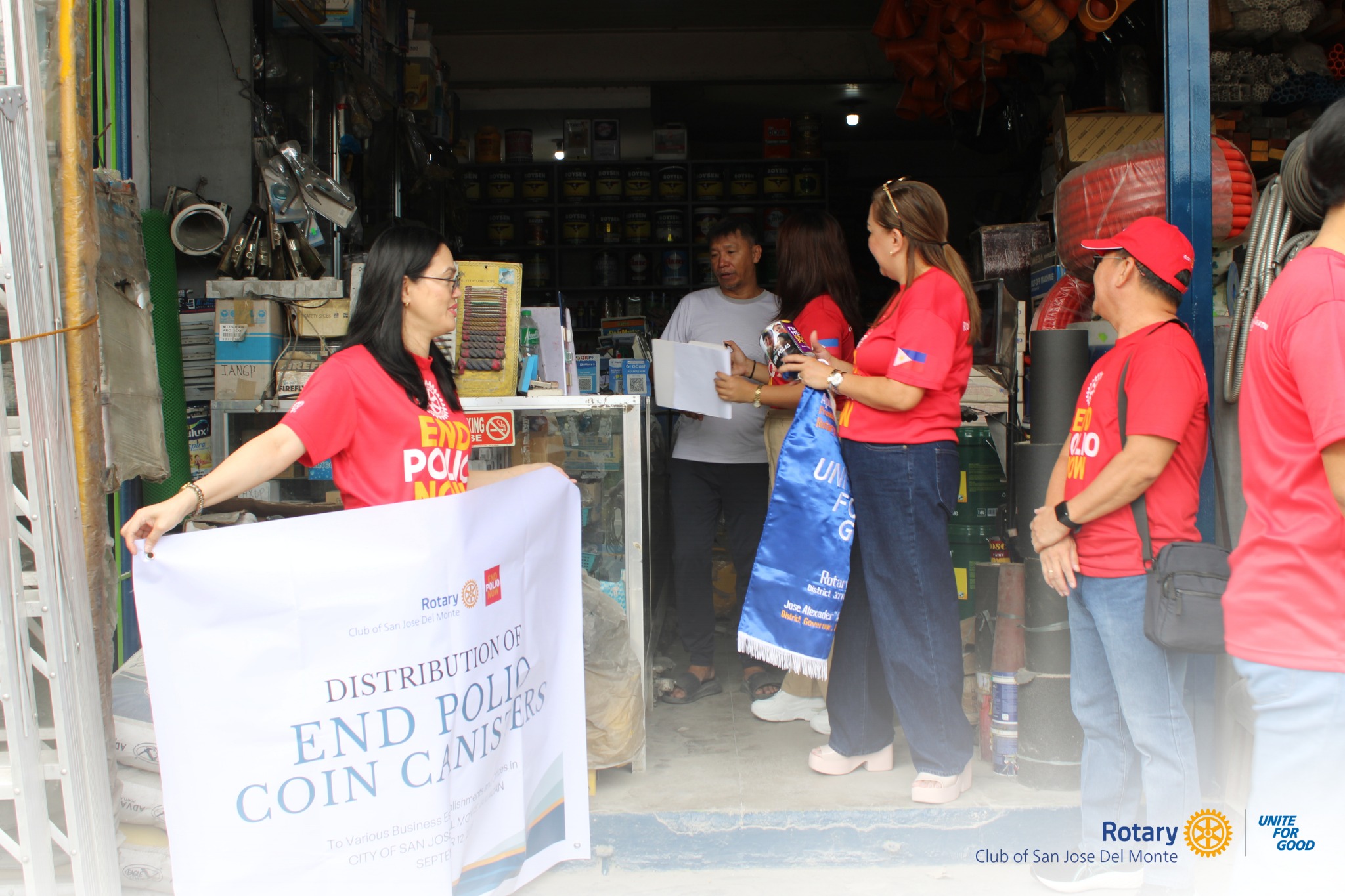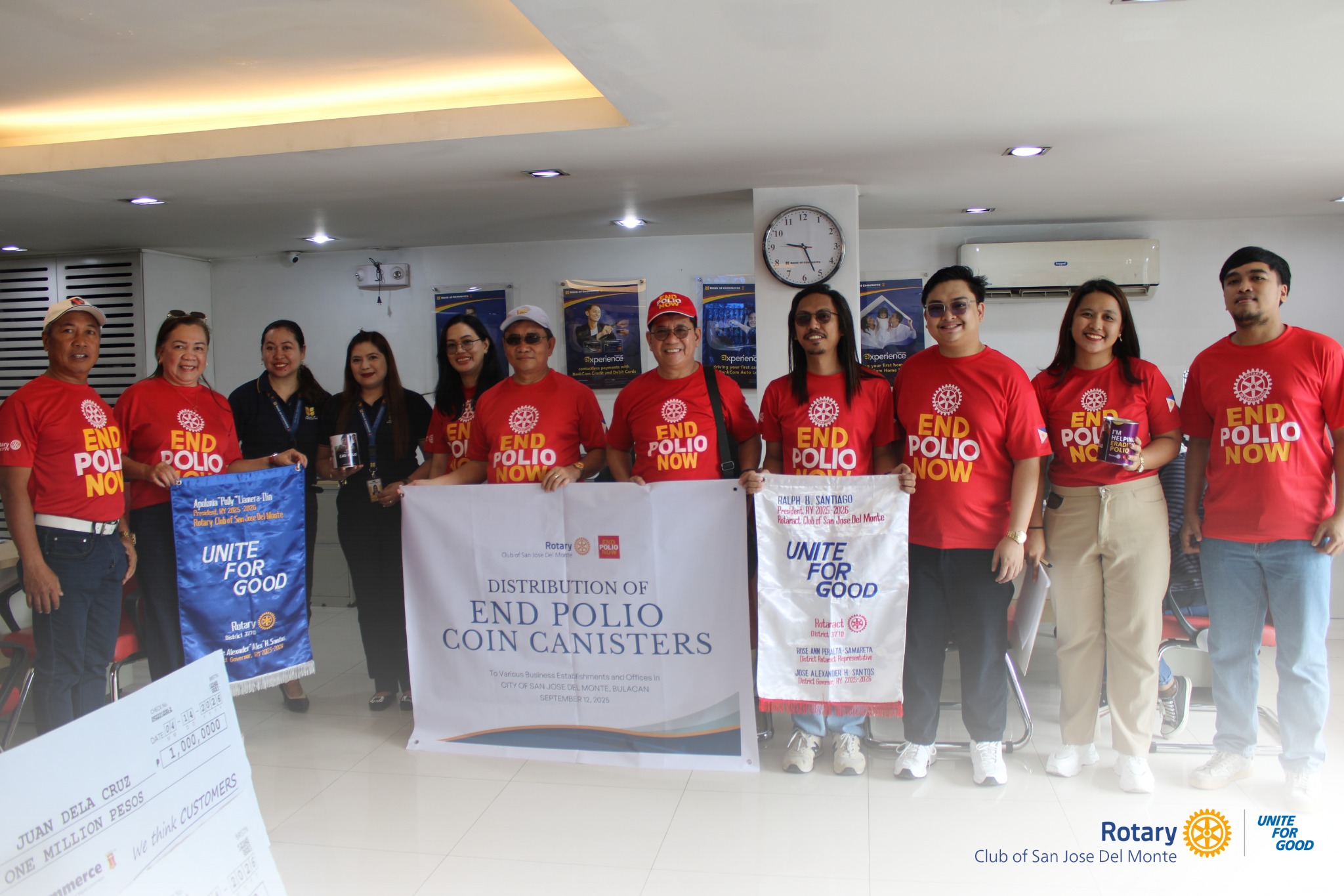 The Rotary Club of San Jose Del Monte traversed Quirino Highway and its neighboring areas to distribute and install coin canisters yesterday, September 12, 2025, in support of Rotary International’s End Polio Campaign and around a month before the World Polio Day.