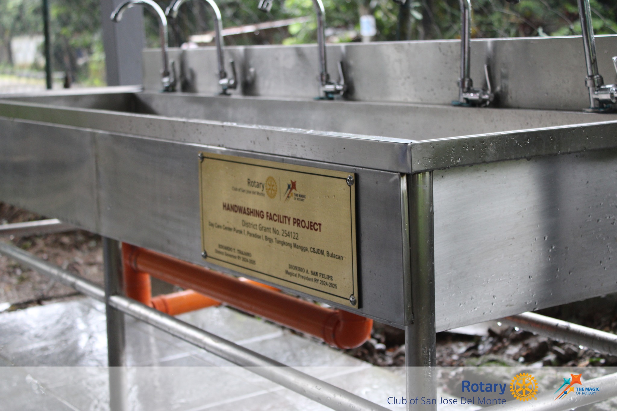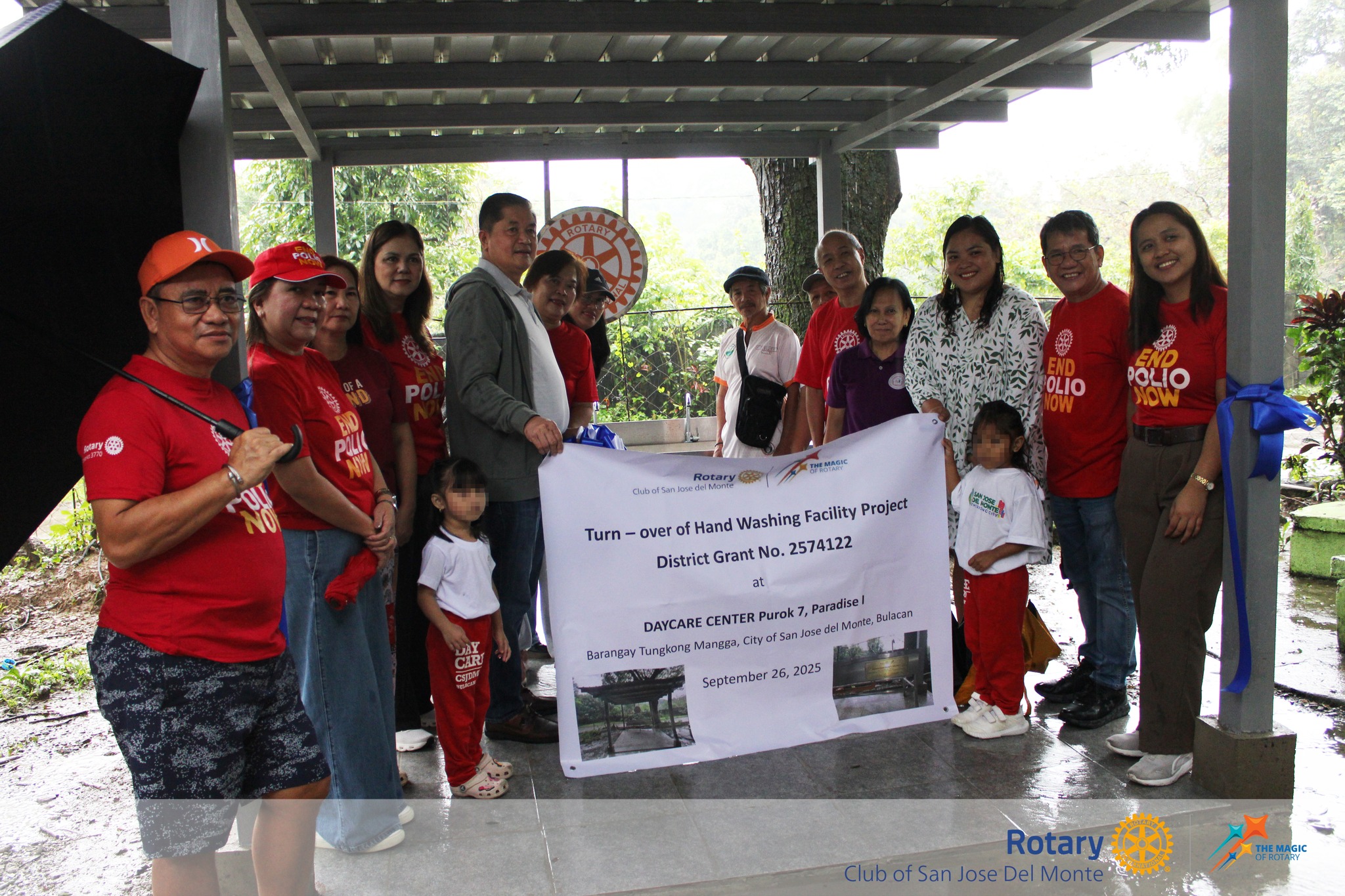 The Rotary Club of San Jose Del Monte officially turned over the Hand Washing Facility Project at Paradise Day Care Center, Brgy. Tungkong Mangga, City of San Jose Del Monte, Bulacan last September 26, 2025.